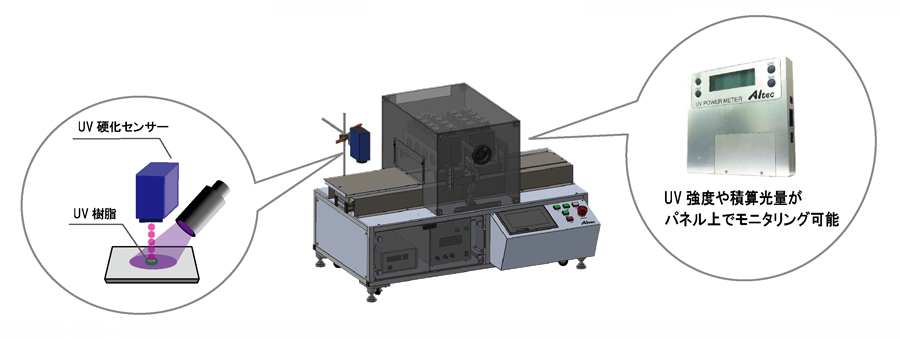 UV樹脂の硬化度合を非接触で瞬時に数値化しますパネル上でリアルタイムモニタリングが可能です
